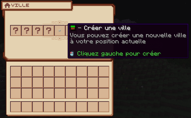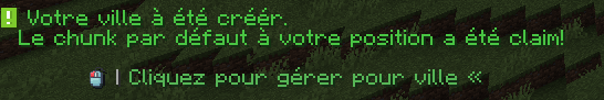 Tout joueur peut créer sa propre ville sur le serveur. Pour cela, vous devez vous trouver dans le monde **Ville #1** et exécuter la commande suivante: